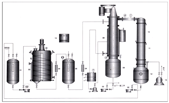 该装置技术特点:该装置即可适用于单次提取、浓缩过程,又可适用于多次提取、浓缩过程。可实现在溶剂完全回收的情况下对药物的多次提取,节省步骤及溶剂,具有很强的环保特性。通过在不锈钢反应釜外增加超声波振子,利用超声波的空化效应,增加天然药物有效成份向溶剂中转移的速度,使有效成份的浸取效率大幅提高,真空技术在浓缩阶段的应用使得浓缩更加充分,通过两种技术的有机结合,使得本装置的连续提取浓缩更加高效。主要指标:将超声强化提取与真空强化浓缩两种技术联系起来,达到提取、浓缩连续进行的效果。可以根据需要对待提取的物料进行一次或多次的提取过程,而不浪费多余的溶剂。由于两种强化技术的应用,使本发明装置在用于药物及其它提取浓缩过程的总效率大幅增加。)